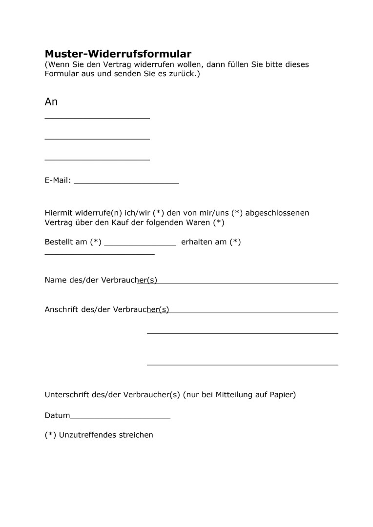Formular für den Widerruf zum Herunterladen