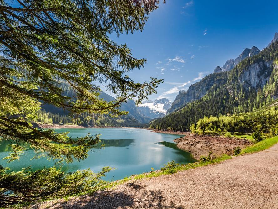 After exploring Gosau, we recommend driving further south to the Gosausee lake. This beautiful lake is just a 15-minute drive from Gosau and offers breathtaking views. Set between the Dachstein glacier and majestic mountain peaks, the lake is a must-see. The area offers a beautiful hiking trail that goes all the way around the lake. Perfect also for a walk with your dog should you be looking for a holiday home with your dog. A bonus is the cosy lodge by the lake, where you can stop for a delicious meal. For the adventurous among us, there is the option of renting a boat and exploring the lake in a different way. Another fascinating attraction in the area is the gondola ride up, which offers spectacular views of the surrounding landscape. It is also the gateway to Austria's infamous 'Skyladder', an adventure that should definitely be on every visitor's bucket list.
